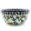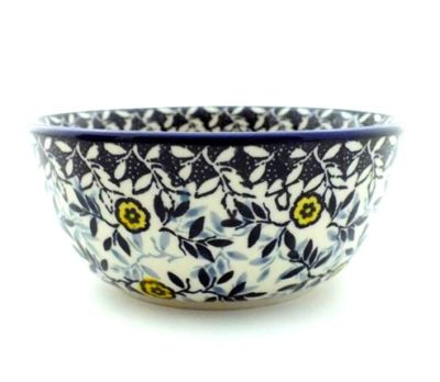 This small bowl is from Ceramika Artystyczna of Boleslawiec, Poland. This bowl is wider at the top than bottom. The size is great for dips, rice, yogurt, cottage cheese, fruit, ice cream and snacks. Cabinet saver, they stack beautifully. Use your Polish Pottery. It is meant to be used. Polish Pottery Just Makes You Happy!